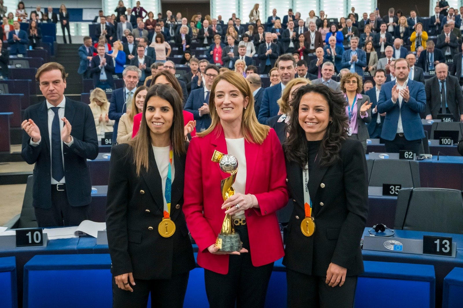 Como invitadas especiales asistieron Ivana Andrés y Alba Redondo jugadoras de la Selección Española de Fútbol, quienes representaron al colectivo nacional que consiguió la Copa del Mundial FIFA el pasado año en Australia y Nueva Zelanda, manifestaron ante la Eurocámara que el deporte “emociona, transforma y educa lo cual permite que las niñas de todo el mundo tengan como referentes femeninos a mujeres que las inspiren y les permitan no rendirse y seguir adelante” y que “para construir un futuro mejor y una sociedad más justa e igualitaria, la educación y el deporte deben de estar unidos como una poderosa palanca”.